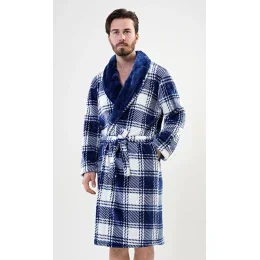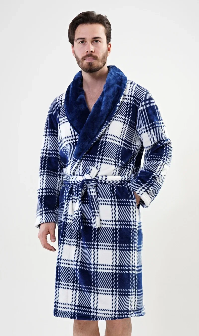 Pánský softový župan se šálovým límcem Filip. Pánský župan se šálovým límcem, páskem na převázání a kapsami v károvaném provedení. Použitý softový materiál je jemný a poddajný na dotek. Župan Vás zahřeje cestou z koupelny i při lenošení na gauči, bude to Váš milý společník v chladných dnech.