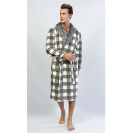 Pánský softový župan se šálovým límcem Patrik. Pánský župan s károvaným potiskem v příjemných tlumených barvách má hřejivý šálový límec. Použitý softový materiál je jemný a poddajný na dotek. Župan Vás zahřeje cestou z koupelny i při lenošení na gauči, bude to Váš milý společník v chladných dnech.