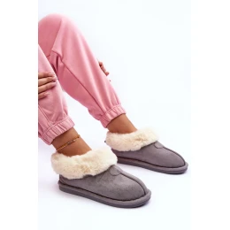 Tyto nazouvací pantofle jsou ideální volbou pro chladné dny doma! Jsou vyrobeny z ekologického semiše. Uvnitř je hřeje na dotek příjemný hustý kožíšek. Měkká stélka zajistí pohodlné používání obuvi. Tento model je usazen na nízké platformě a protiskluzové podrážce.