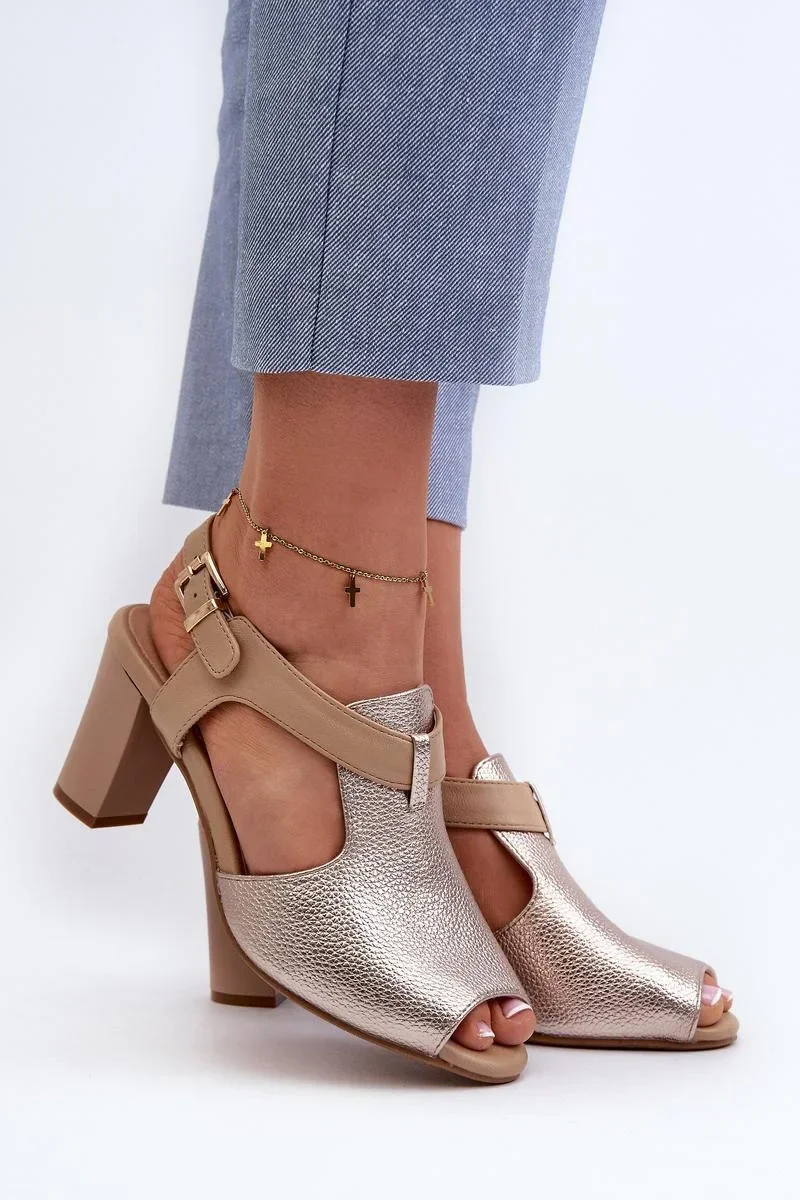 Dámské sandály z kvalitní ekokůže. Jsou posazeny na pohodlném jehlovém podpatku a zajišťují stabilitu a pohodlí při nošení. Nastavitelný pásek se sponou umožňuje dokonalé přizpůsobení noze. Stélka z přírodní kůže navíc poskytuje další pohodlí a pocit měkkosti. Tyto stylové sandály budou dokonalým doplňkem vaší letní stylizace.