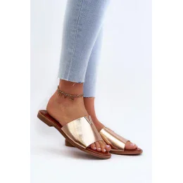 Dámské žabky z ekologické kůže. Zlatý prvek dodá vašemu letnímu stylingu šmrnc. Jsou usazené na plochém podpatku. Tento model bude ideální volbou pro mnoho příležitostí!