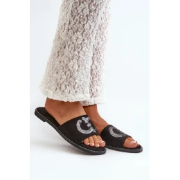 Dámské žabky byly vyrobeny z ekologického semiše. Jsou posazené na plochém podpatku. Ozdobné flitry na pásku dodávají na přitažlivosti. Měkká stélka Comfort vám umožní pohodlné nošení i po celý den. Skvěle se hodí k ležérním outfitům!
