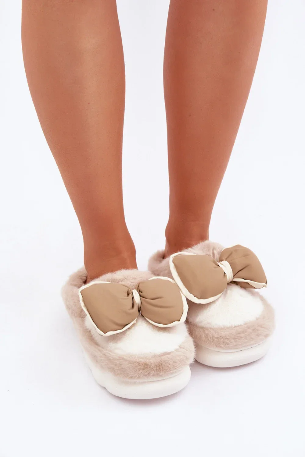 Dámské pantofle vyrobené z měkkého, příjemného kožešiny dokonale obepínají nohy, poskytují teplo a pohodlí. Model s tlustou podrážkou pro stabilitu a izolaci od chladného povrchu. Zakryté špičky poskytují další ochranu před chladem, čímž jsou pantofle ideální volbou na chladné dny. Přední část zdobená mašlí, která dodává zvláštní kouzlo. Stylové a praktické!