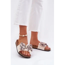 Elegantní pantofle s korkovou podrážkou mají tvarovanou stélku. Vyrobené z ekologického semiše a textilního materiálu. Na přední straně je ozdobené mašlí. Pantofle jsou univerzální a skvěle se hodí na každodenní aktivity, do práce nebo na nákupy. Ideální volba na letní dny!