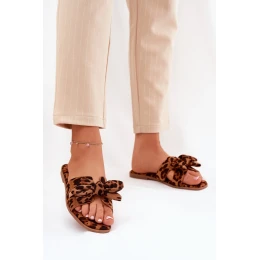 Dámské sandály vyrobené z ekosuede. Umístěné na ploché podrážce, která spojuje pohodlí s decentním stylem. Přední část boty je zdobena výřezy a roztomilou mašlí, která jim dodává zvláštní charakter. Skvěle se hodí k letním šatům, sukničkám nebo kraťasům, spojují jednoduchý design s funkčností a skvěle zapadají do dovolenkového stylu.