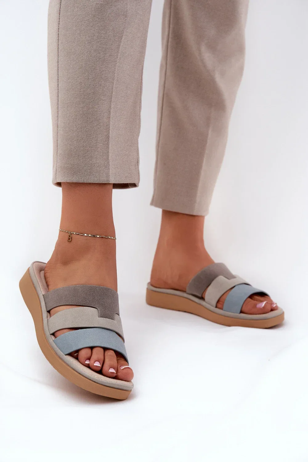 Dámské sandály z ekokože jsou stylovým a pohodlným návrhem na teplé dny. Umístěné na platformě. Tři popruhy vpředu dodávají moderní charakter. Měkká kůžená stélka s efektem polštáře zajistí pohodlí po celý den, pečujíc o pohodlí nohou. Tyto sandály budou ideální volbou na letní procházky!