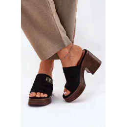 Elegantní dámské žabky vyrobené z ekologického semiše jsou ideální volbou na speciální příležitosti. Zlatý detail vpředu jim dodává jemný lesk a elegantní charakter. Díky masivnímu podpatku a platformě poskytují stabilitu a pohodlí po celý den. Tyto žabky spojují moderní vzhled s funkčností, skvěle ladí s elegantními stylizacemi na různé slavnostní události a večerní vycházky.