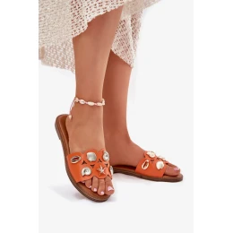 Žabky vyrobené z ekokože. Umístěné na plochém podpatku. Model je zdoben zlatými mořskými ozdobami, které jim dodávají jedinečný charakter. Měkká stélka zajišťuje pohodlí po celý den a jednoduchý, ale stylový design zajišťuje, že tyto žabky skvěle ladí s letními outfitmi. Ideální pro každodenní nošení, kombinují funkčnost s módním vzhledem.