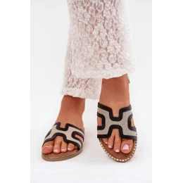 Dámské sandály vyrobené z kombinace ekokože a textilního materiálu, umístěné na plochém podpatku, jsou pohodlnou nabídkou na každý den. U podrážky je zlatá ozdoba, která jim dodává jedinečný charakter. Měkká stélka zajišťuje pohodlí po celý den, díky čemuž sandály skvěle ladí s každodenními a letními outfit.