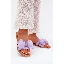 Dámské sandály z ekokože umístěné na ploché podrážce jsou skvělým návrhem na každý den. Vynikají tiulovou mašlí. Ideální k letním stylizacím, skvěle se kombinují s šaty, sukněmi nebo kalhotami, spojují jednoduchost s jemným šarmem.