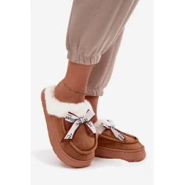 Dámské pantofle vyrobené z měkkého ekologického zamszového materiálu. Umístěné na silnější podrážce poskytují stabilitu a pohodlí při chůzi po domě. Vnitřek vyložený plyšovým kožešinou obklopuje nohy teplem, dělají je ideální na chladnější dny. Rozkošná mašlička s nápisy umístěná vpředu dodává dívčímu šarmu a odlišuje je od klasických modelů. Jsou to pantofle, které skvěle kombinují praktičnost s módním vzhledem.