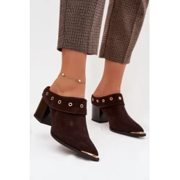 Dámské sandály vyrobené z přírodního semiše jsou výjimečnou nabídkou pro ženy, které rády nosí módní doplňky inspirované westernovým stylem. Měkká kůže dodává botám elegantní vzhled a zajišťuje pohodlí při nošení, díky čemuž se model skvěle hodí na speciální události. Charakteristickým prvkem je ohnutý límec na vrcholu, který zdůrazňuje původní střih a dodává nezaměnitelný styl. Špičaté špičky ozdobené zlatým detailen přinášejí jemný, elegantní akcent, opticky zjemňují nohu. Boty jsou umístěny na stabilním sloupkovém podpatku, který zajišťuje pohodlí při chůzi a jemně zdůrazňuje siluetu. Jsou to efektní sandály s výrazným charakterem, které skvěle doplní outfit s šaty, sukněmi nebo elegantními kalhotami.