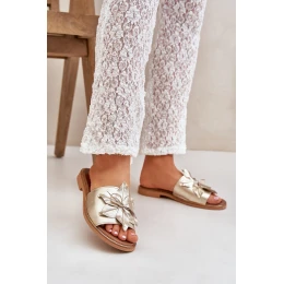 Pantofle S Dekorací Z Pravidelné Kůže Zazoo 3667 Zlaté