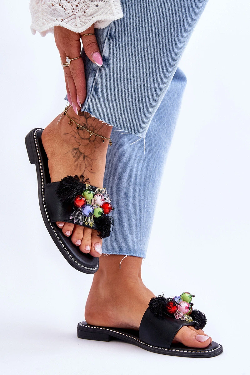 Pantofle s ozdobnými korálky S.Barski KV-2775-47 Černé
