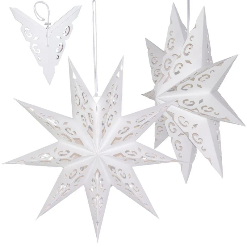 BÍLÁ HVĚZDA 45 CM 9 RÁMŮ PAPÍROVÁ DEKORACE je dekorace, která vytváří wow efekt bez elektřiny, hluku a plastu. Je stylová, praktická a snadno s ní vytvoříte kouzelnou atmosféru ve vaší domácnosti, kanceláři nebo výloze obchodu.