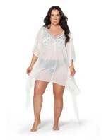 Pareo z jemné, lehce průhledné látky, spodní část zakončená páskem s tmavě modrými kuličkami.