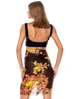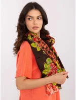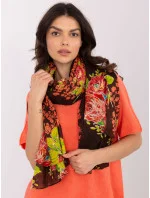 Tmavě hnědá šála s květinovými vzory .