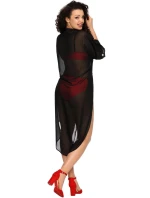 Pareo šátek 005 maxi AVA - černá barva - z jemného šifónu - rukáv ve stylu kimona - velké boční rozparky - větší velikost