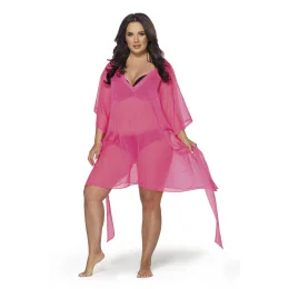 Pareo šátek 020 AVA - růžová barva - z prodyšné látky - výstřih ve tvaru V - volný střih - vázání v pase