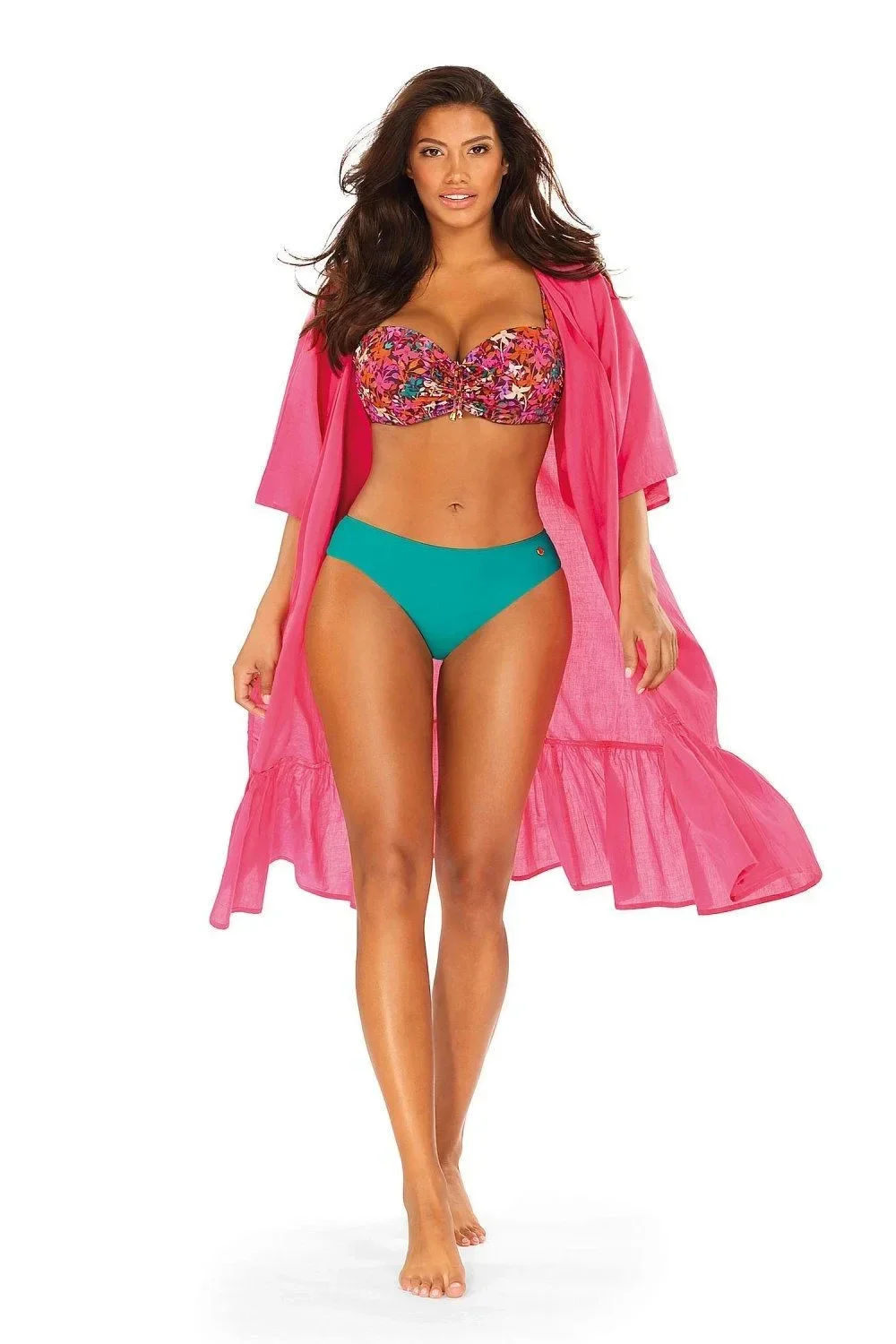 Plážové šaty 11D80SZ 2 SELF - růžová barva - z jemné vzdušné látky - tříčtvrteční rukávy - odolné proti UV záření - nemačkavý materiál
