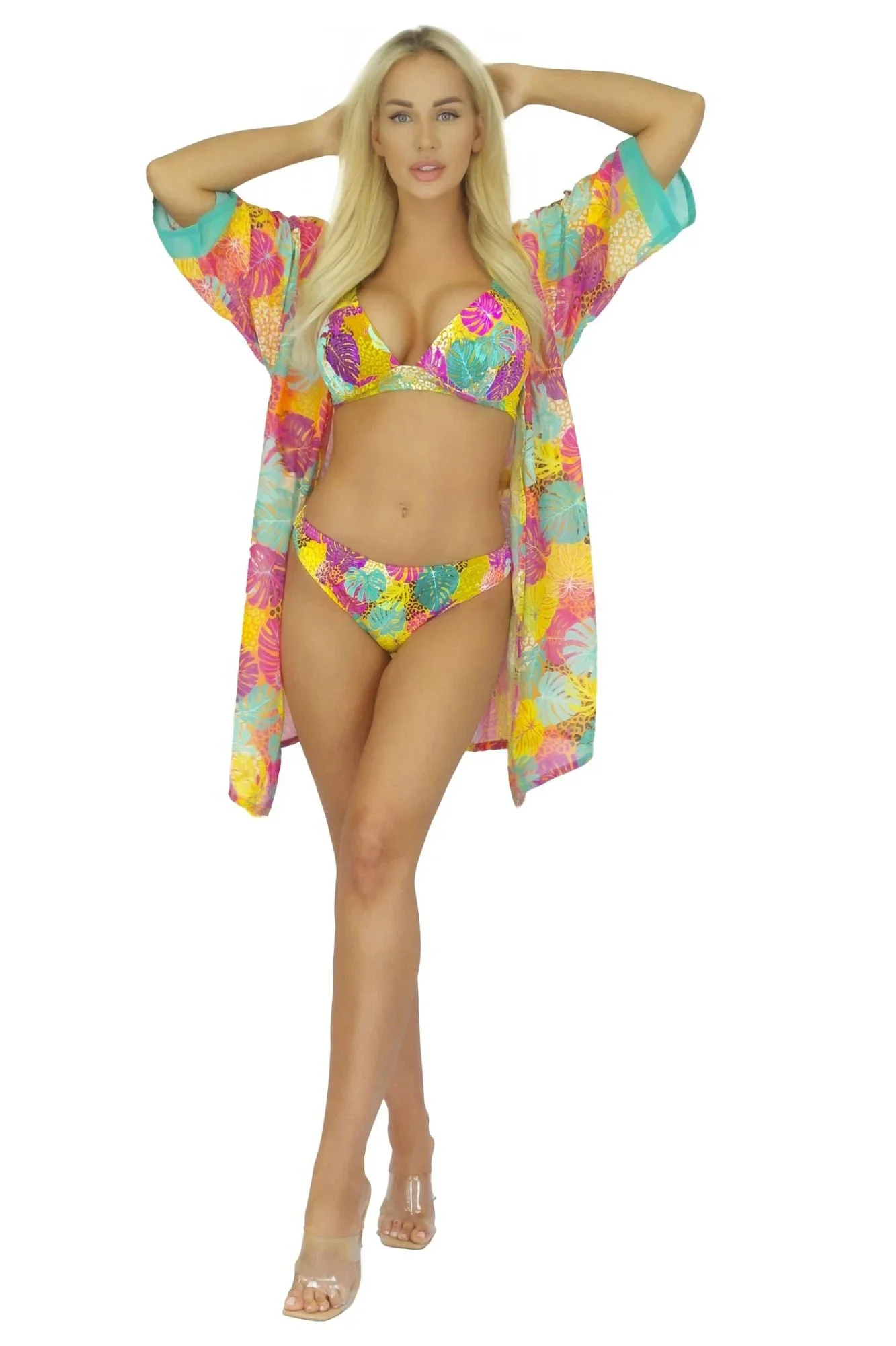 Plážové šaty 11D80SZ 27 SELF - z jemné vzdušné látky - se vzorem - tříčtvrteční rukávy - odolné proti UV záření - nemačkavý materiál
