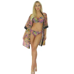 Plážové šaty 11D80SZ 38 SELF - černá barva - z jemné vzdušné látky - se vzorem - tříčtvrteční rukávy - odolné proti UV záření - nemačkavý materiál