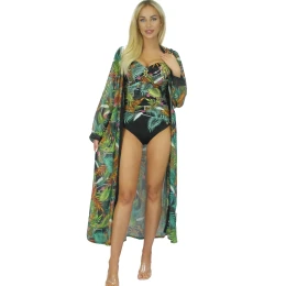 Pareo šátek 14D81SZ 35 SELF - černá barva - z jemné vzdušné látky - se vzorem - odolná proti UV záření - nemačkavý materiál - vázání v pase