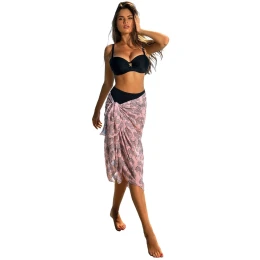 Pareo šátek D95CH 11 SELF - lososová barva - z jemné vzdušné látky - se vzorem - odolná proti UV záření - nemačkavý materiál - zavazování na boku