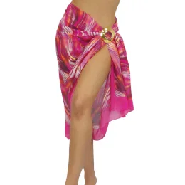 Pareo šátek D95CH 33 SELF - růžová barva - z jemné vzdušné látky - se vzorem - odolný proti UV záření - nemačkavý materiál - zavazování se třpytivou sponou