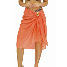 Pareo šátek D95CH1 3 SELF - korálová barva - z jemné vzdušné látky - odolný proti UV záření - nemačkavý materiál - zavazování se třpytivou sponou