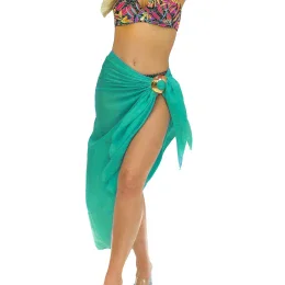 Pareo šátek D95CH1 7 SELF - zelená barva - z jemné vzdušné látky - odolný proti UV záření - nemačkavý materiál - zavazování se třpytivou sponou