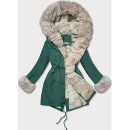 Dámská bunda parka ve tmavě mátové barvě s kožešinovou podšívkou Way Mode (22988)