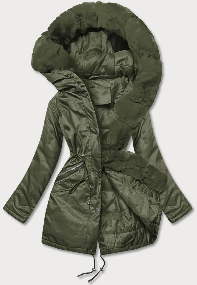 Dámská bunda parka v army barvě s kožešinou (5m762-136)