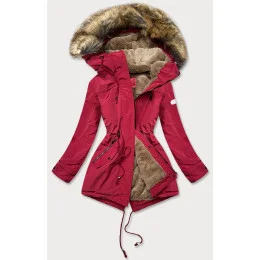 Červená dámská bunda parka s kožešinovou podšívkou (m-21207)