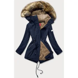 Tmavě modrá dámská bunda parka s kožešinovou podšívkou (m-21207)