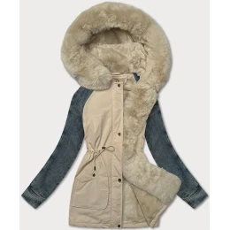 Béžovo-tmavě modrá dámská bunda parka s džínovými rukávy Way Mode (WD202301)