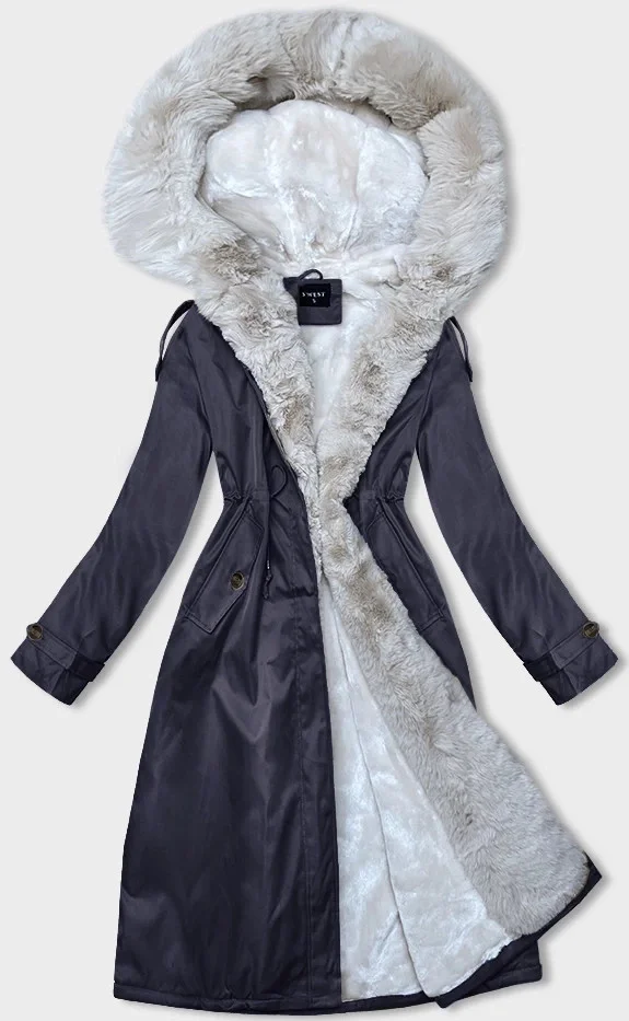 Tmavě modro-béžová dámská zimní bunda parka s kožešinou (B557-3046)