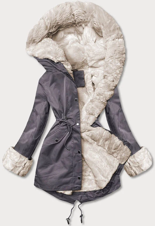 Bunda parka v grafitové barvě s kožešinovou odepínací podšívkou (5M763-105)