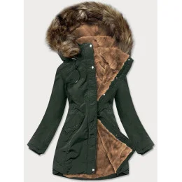 Dámská zimní bunda parka v army barvě s kožešinovou podšívkou (m-21501)