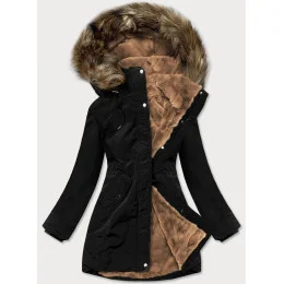 Černá dámská zimní bunda parka s kožešinovou podšívkou (m-21501)