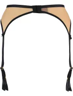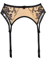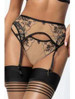 Měkký a decentní podvazkový pás s jemným černým, květinovým vzorem je něžným doplňkem, který promění celý outfit. Dodá mu charakter a šarm, díky němuž se budete cítit smyslně a svůdně. Pás je podšitý nude tylem a je vybaven podvazkovými nástavci, zapíná se výšivkou s dvojitým háčkem. Akcenty a regulátory jsou ve zlaté barvě. Zabudované boční kostice zvýrazňují strukturu. Materiálové složení: polyamid 85 %, polyester 11 %, elastan 4 %