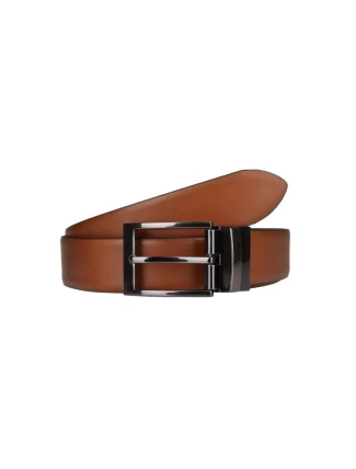 - Pánský kožený pásek s propracovanou kovovou sponou v elegantním stylu.