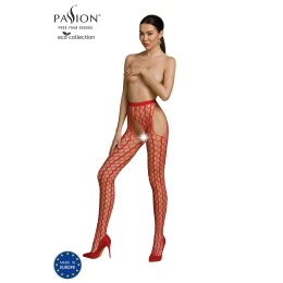 Punčochové zboží značky Passion, model ECO S007. Výrobek je vyroben z 83 % z regenerovaného nylonu, 17 % z rozložitelného elastanu. Dámský výrobek. Spodní prádlo se vyznačuje rozparkem v rozkroku.