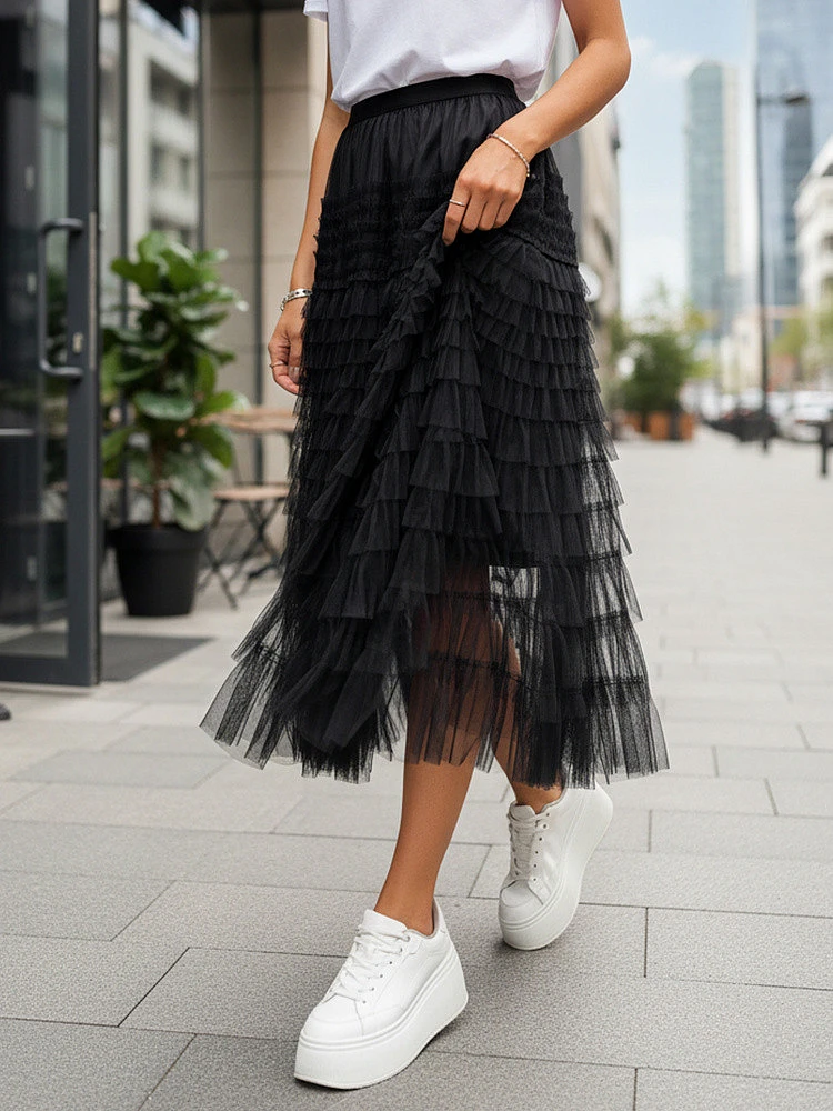 Tylová sukně v maxi délce je nepřehlédnutelným trendovým kouskem, který díky své módní délce, elastickému pasu a zajímavému prošívání tylu vytváří stylový celek. Skvěle se hodí k elegantnímu i ležérnímu vzhledu, k dostání ve třech barvách.