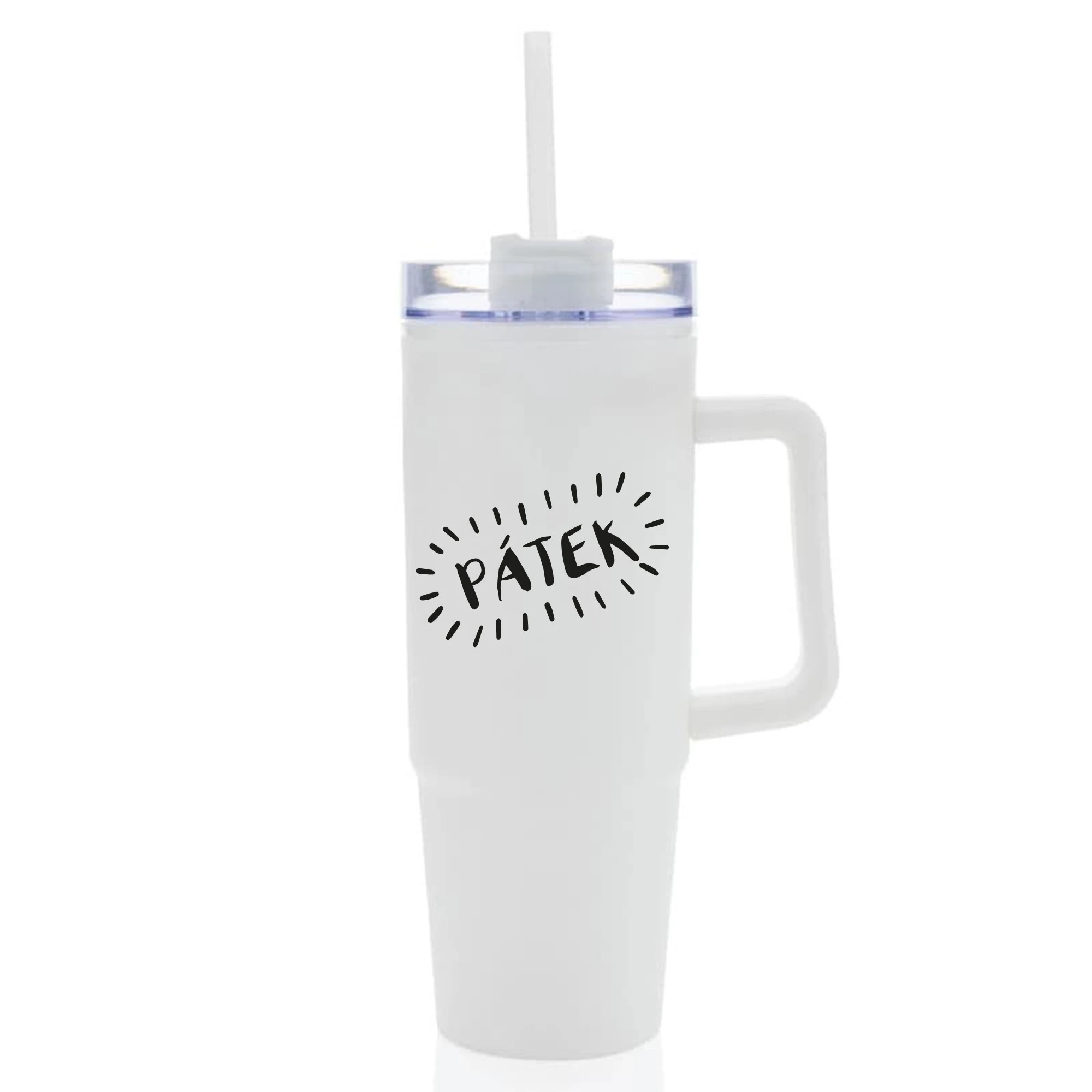 PÁTEK - bílý cestovní hrnek s průhledným víčkem 900 ml