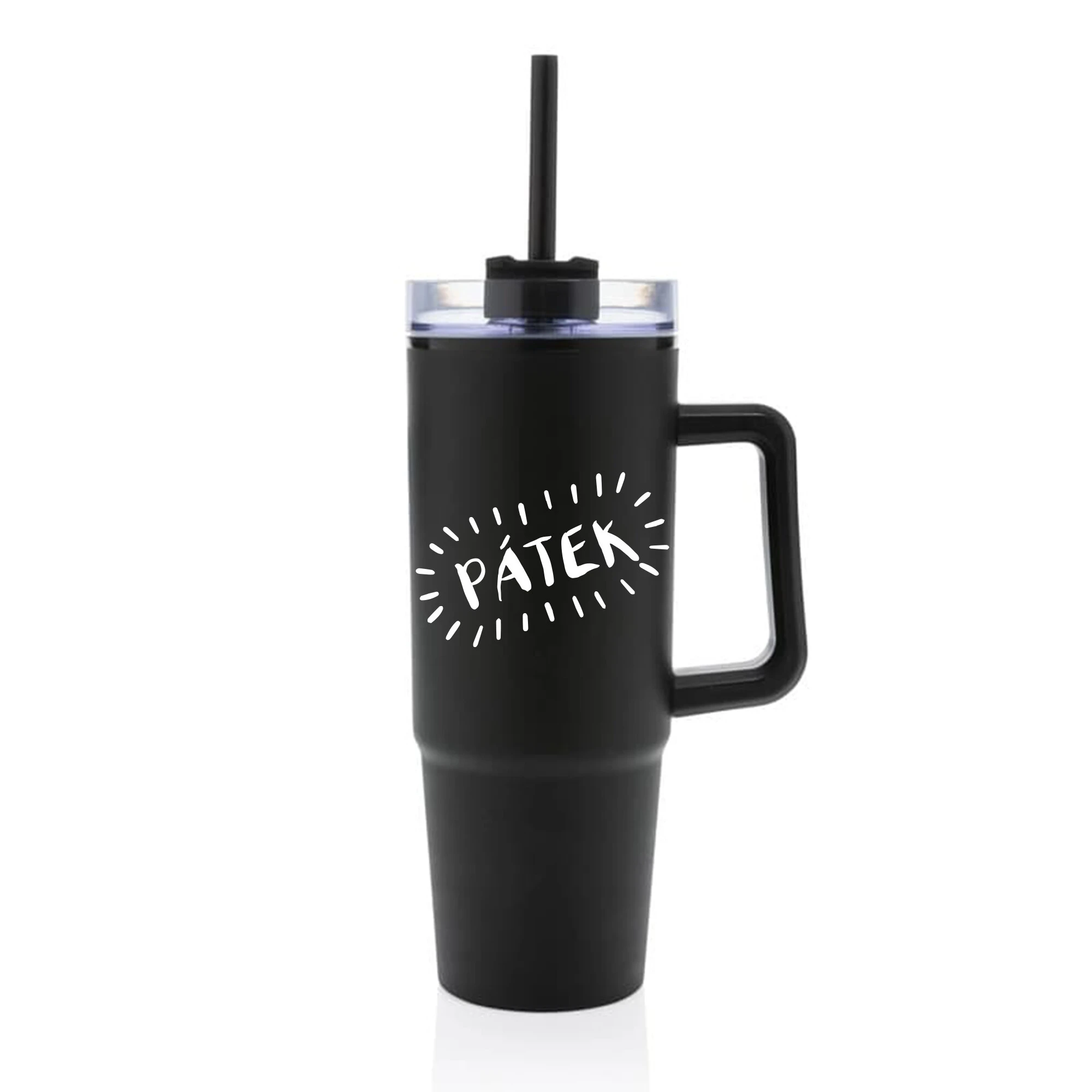PÁTEK - černý cestovní hrnek s průhledným víčkem 900 ml