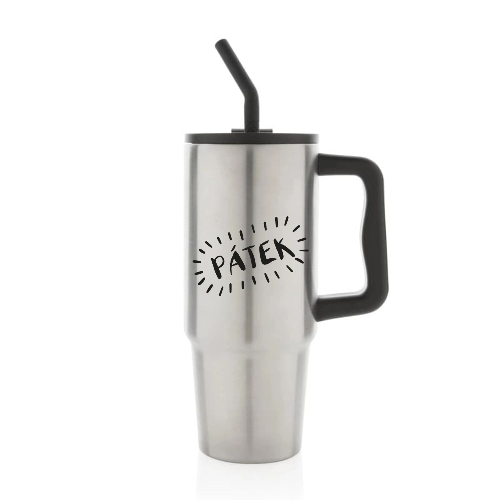 A ten potisk? „PÁTEK“ – protože pátek je prostě stav mysli 😎🎉. Hodí se do práce, na cestu i na lenošení doma. Díky dvojité stěně udrží tvůj nápoj dlouho horký nebo naopak krásně ledově studený.