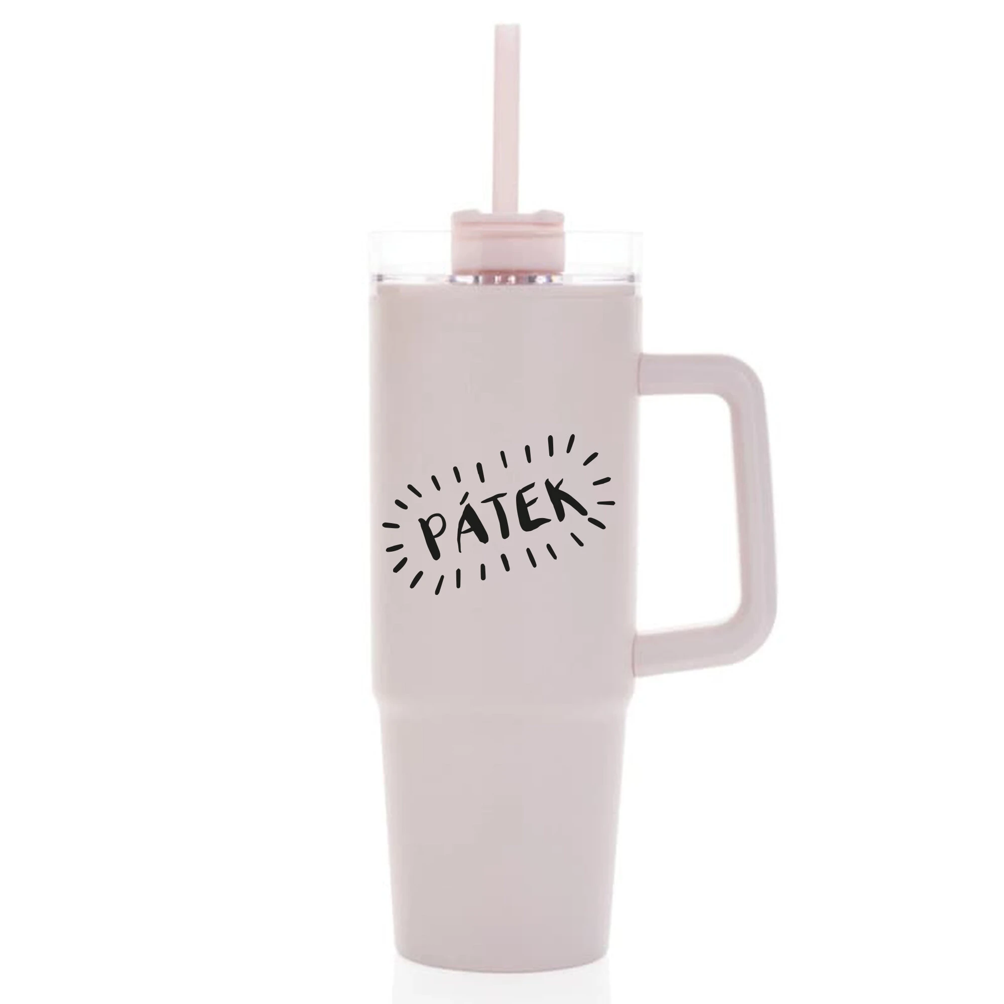 PÁTEK - světle růžový cestovní hrnek s průhledným víčkem 900 ml