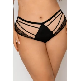 Odkryj wyjątkowe czarne figi z wysokim stanem, które łączą w sobie elegancję, zmysłowość i wygodę. Przód majtek zdobią efektowne paski oraz transparentny tiul połączony z delikatną koronką, które subtelnie podkreślają biodra i dodają charakteru. Tył wykonany z gładkiego, miękkiego tiulu zapewnia komfort noszenia i idealne dopasowanie do sylwetki. To idealna propozycja dla kobiet, które cenią sobie połączenie klasyki i nowoczesnego designu w bieliźnie.