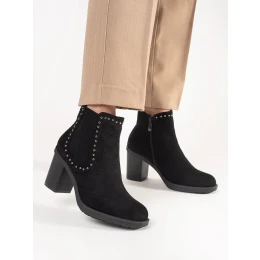 Pěkné černé dámské kotníčkové boty na širokém podpatku